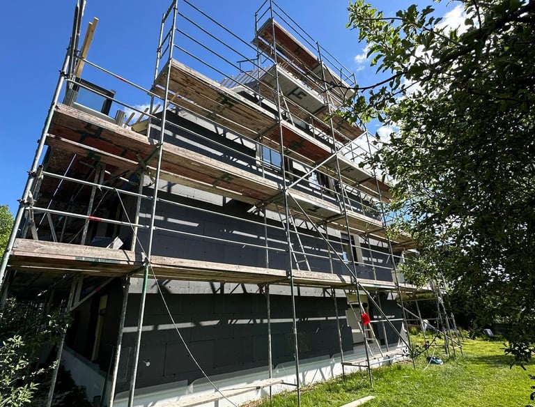 Unser Leistungsspektrum umfasst Wärmedämmung, Fassadensanierung, Malerarbeiten, Trockenbau, Bodenbelagsarbeiten sowie die Reinigung von Regenrinnen. Bei KW-Bau erhalten Sie alle Leistungen aus einer Hand – von der ersten Beratung über die Planung bis hin zur fachgerechten Ausführung. Dadurch vermeiden wir unnötige Schnittstellen, sorgen für einen reibungslosen Ablauf und garantieren gleichbleibend hohe Qualität.